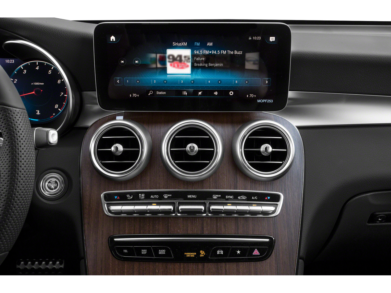 - Radio: AM/FM/HD -inc: 10.25" center touchscreen display, Frontbass audio system, MBUX intelligent vehicle assistant ("Hey Mercedes"), Bluetooth® technology for handsfree phone use/audio streaming and 2 USB ports