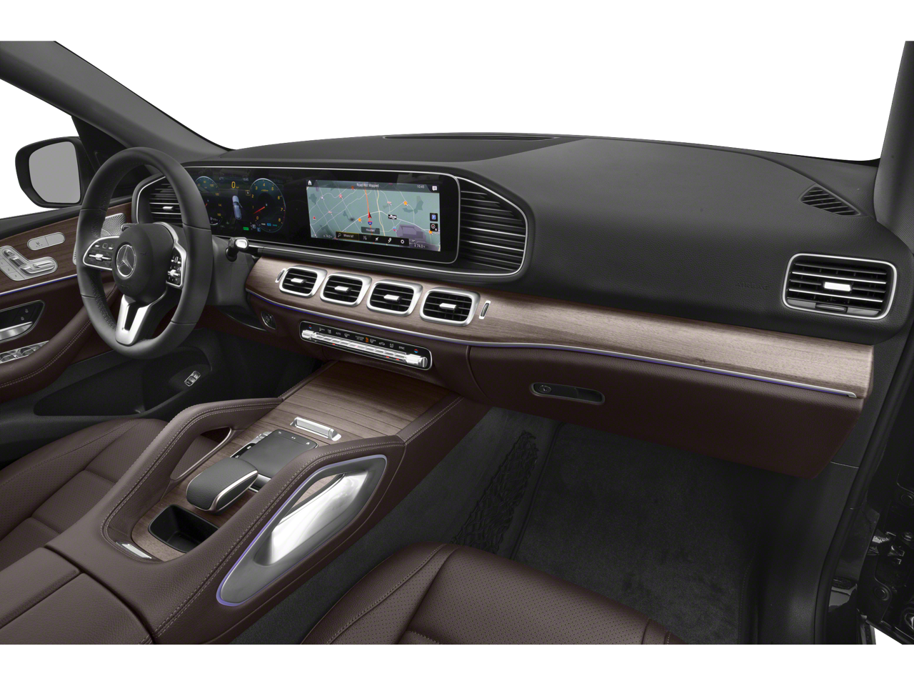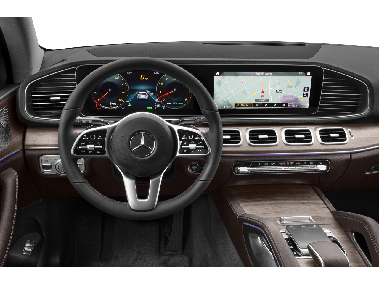The interior of the GLE 450 4MATIC® is a masterpiece of luxury and technology. Sink into the plush, heated power front seats with driver memory, surrounded by genuine wood accents and premium MB-Tex upholstery. The MBUX infotainment system, with its 12.3-inch touchscreen display, provides seamless connectivity and intuitive control over the vehicle's advanced features, including Apple CarPlay® and Android Auto®.