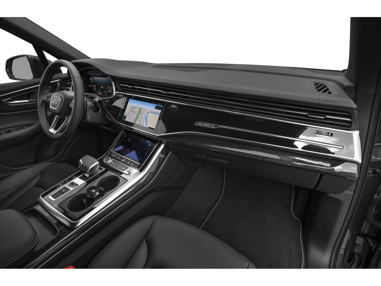 Slip into the luxurious, ventilated front seats and enjoy the sophisticated ambiance of the cabin, enhanced by the Audi Beam Rings and Audi Guard All-Weather Mats. The panoramic sunroof and four-zone automatic climate control ensure a comfortable journey, while the Traffic Sign Recognition and Comfort Adaptive Air Suspension provide added convenience and control.
