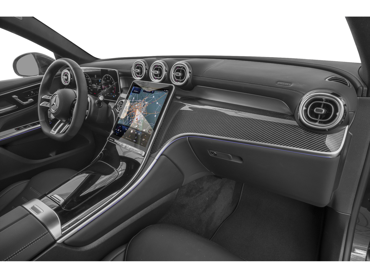Step inside and experience the epitome of luxury. The cabin is meticulously crafted with premium materials, including MB-Tex/Microfiber Upholstery and genuine wood accents. Sink into the heated, power-adjustable front seats and let the Burmester® sound system envelop you in exceptional audio quality.
